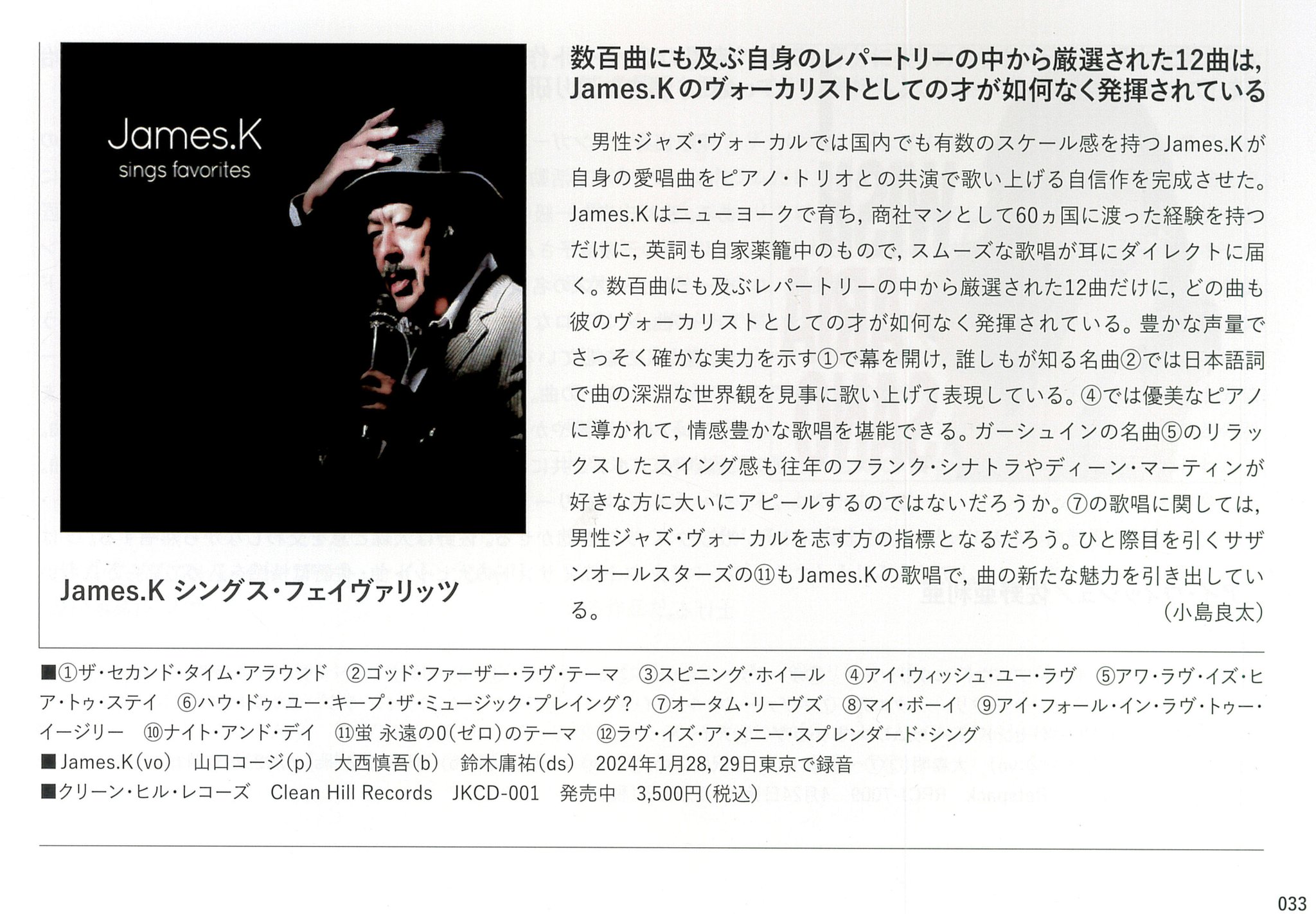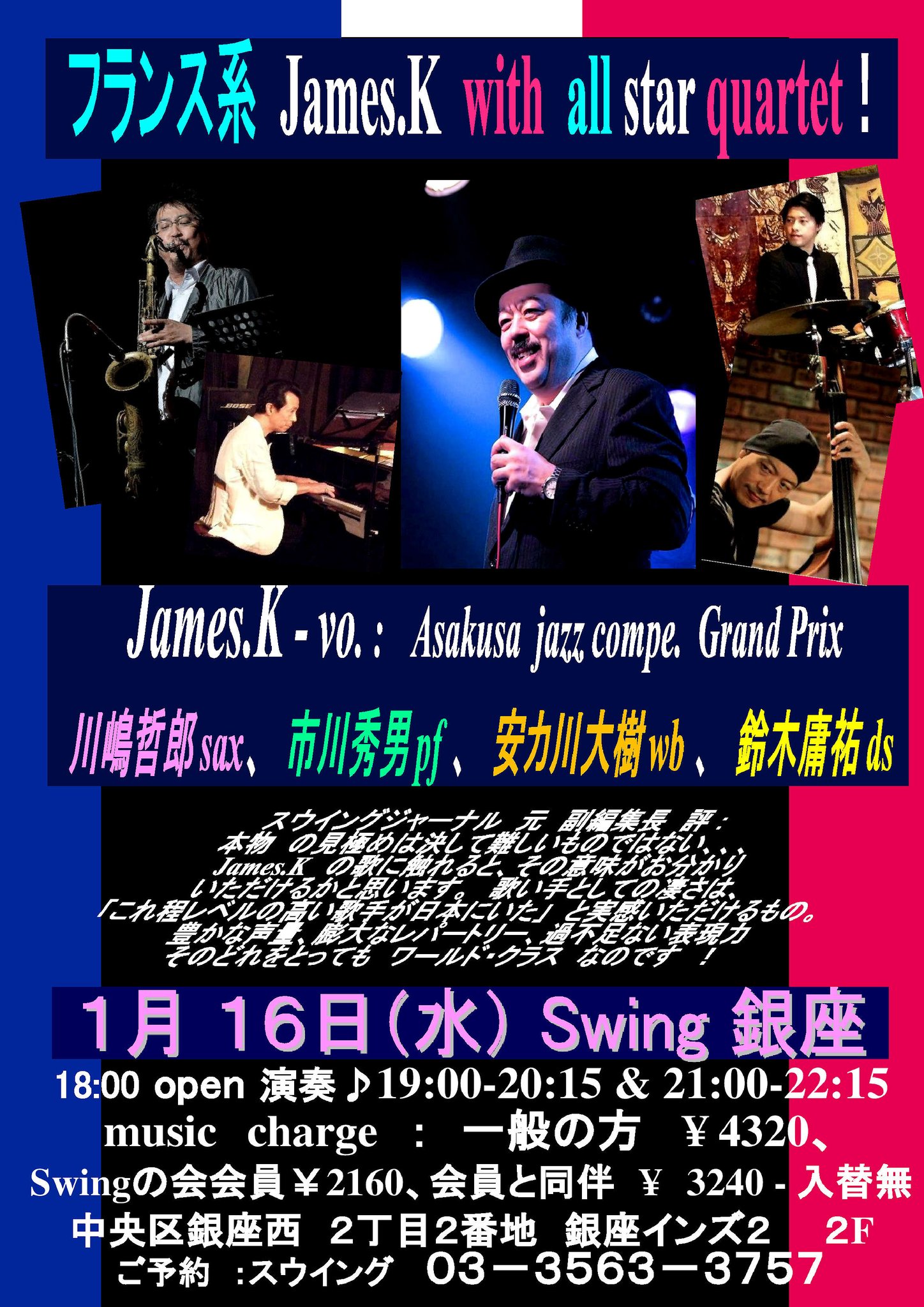 の見極めは、けっして難しいものではない。James.Kの歌に触れると、その意味がお分かりいただけるかと思います。歌い手としての凄さは、「これほどレベルの高い歌手が日本にいた」と実感 いただけるもの。 抜群の声量、膨大なレパートリー、過不足ない高い表現力、どれもがワールドクラスなのです。